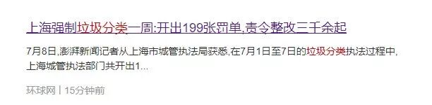 7月8日澎湃新聞曝出,在7月1日至7日的垃圾分類執法過程中,上海城管執法部門共開出199張罰單!全市共出動城管執法人員18600人次,共計檢查商業樓宇2377家次、大型商場776家次,園區企業682家次。
