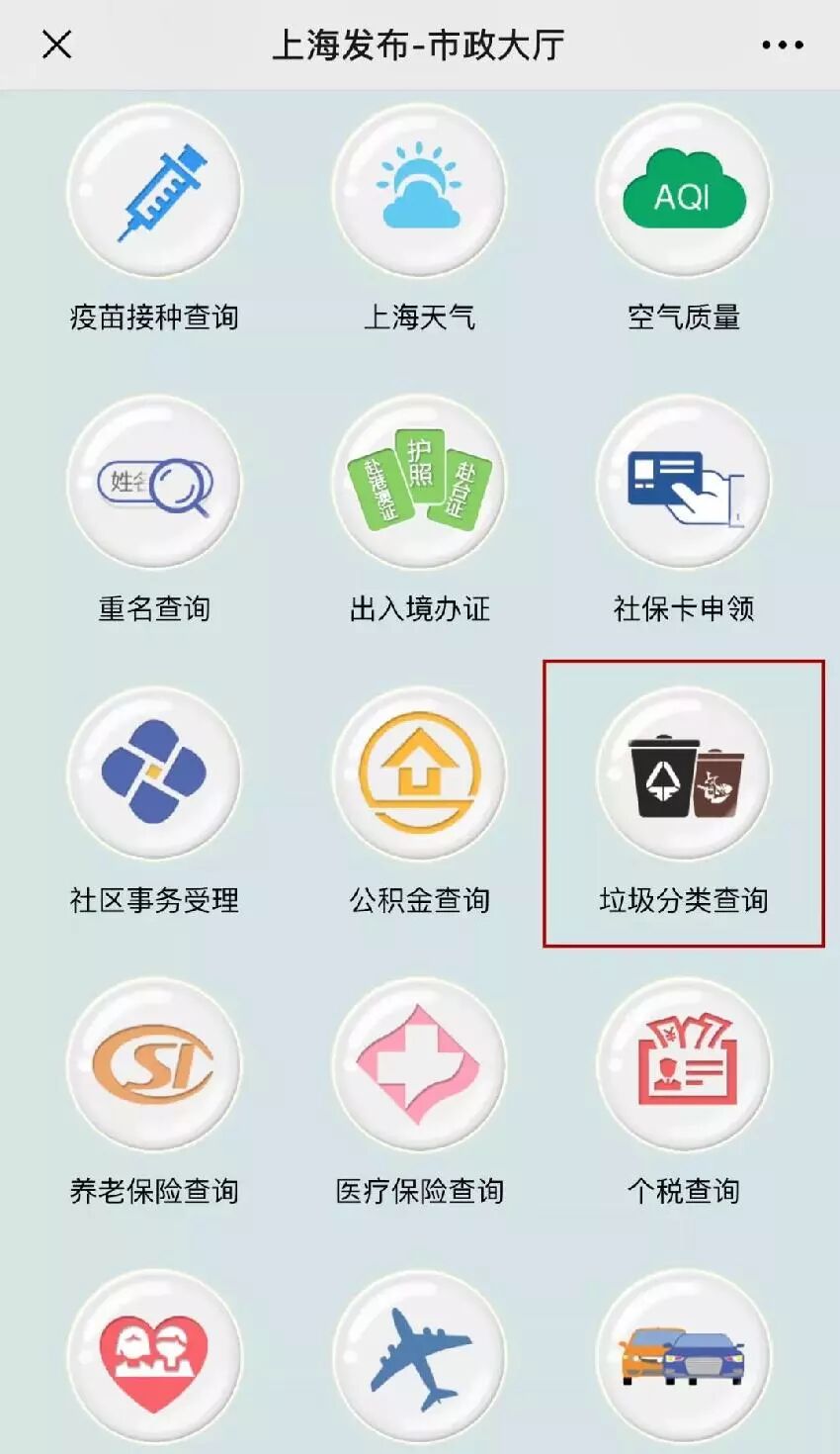 如果還是有垃圾不知道該怎么扔,可以在”上海發布”微信公眾號里,“市政大廳”一欄內找到“垃圾分類查詢”,一鍵治療你的分類迷茫。